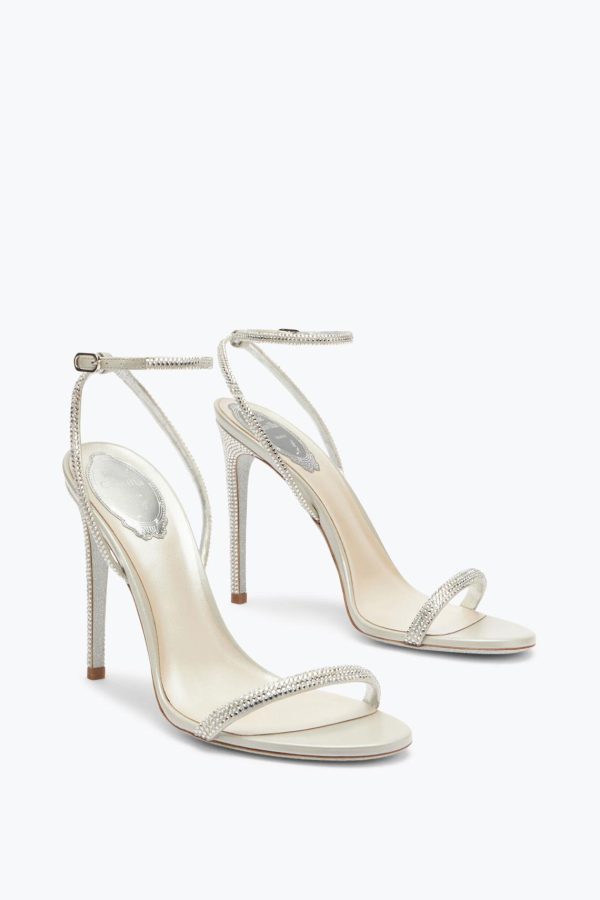 The Ellabrita sandal embodies the simplicity of a minimal line in a sophisticated pearl gray hue, punctuated with the iconic rhinestones expertly placed on the vamp, ankle strap, and stiletto heel. Made in Italy with a stardust sole, it’s the perfect choice to complete a neutral look or balance a colorful ensemble.