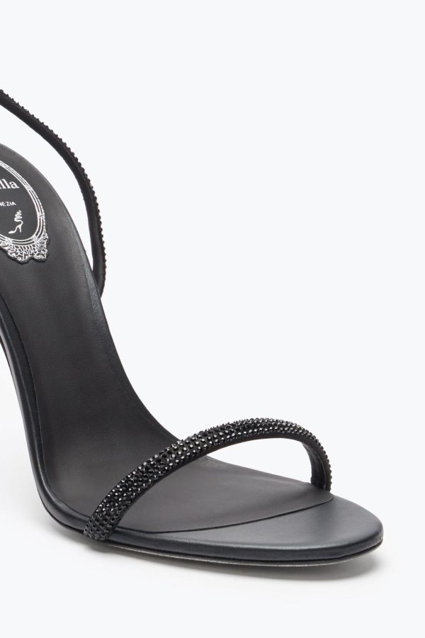 The captivating elegance of black is represented in these stiletto heel sandals ELLABRITA. A feminine and refined line characterised a cascade of micro-rhinestones, applied hand on the toe strap, the ankle strap and the heel. A total black shoe that lends itself to refined combinations during the day and in the evening. The Made in Italy jewel sandal ELLABRITA was made to make every woman feel beautiful at any time of the day.