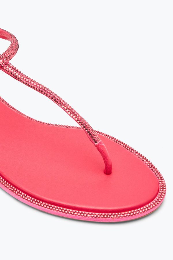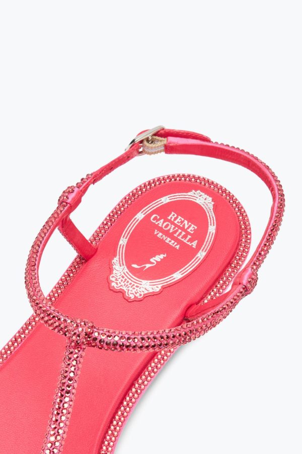 An essential model for the summer season, the Diana flip-flop sandal in the lively coral shade combines the practicality of an ultra-flat design with the sparkling touch given by the tone-on-tone micro crystals, applied on the straps and outer sole.