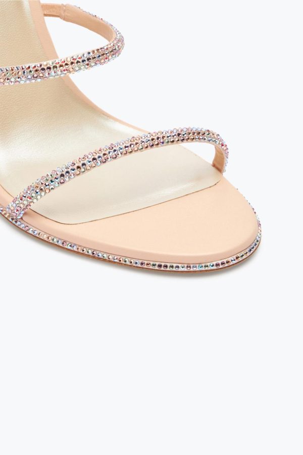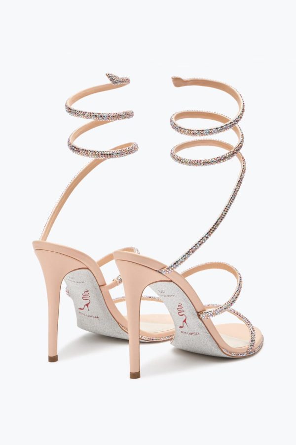 The pink jewelled sandals CLEO are characterised a feminine style with a great visual impact. These high-heeled sandals are characterised a decoration with multicoloured micro rhinestones that highlight the toe cap’s profile, the straps and the spring around the ankle with a snake-head finish. The elegant Made in Italy satin sandals are perfect for creating a sophisticated and trendy look.
