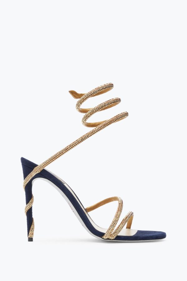 The new gold and midnight combination of the Margot is as elegant as it is unexpected. The crystal snake adds a precious metallic gleam against the dark leather, making it the perfect match to denim or to more formal evening looks.• Made in Italy• Heel height 4,1• Round toe• Satin and Nappa• Leather sole