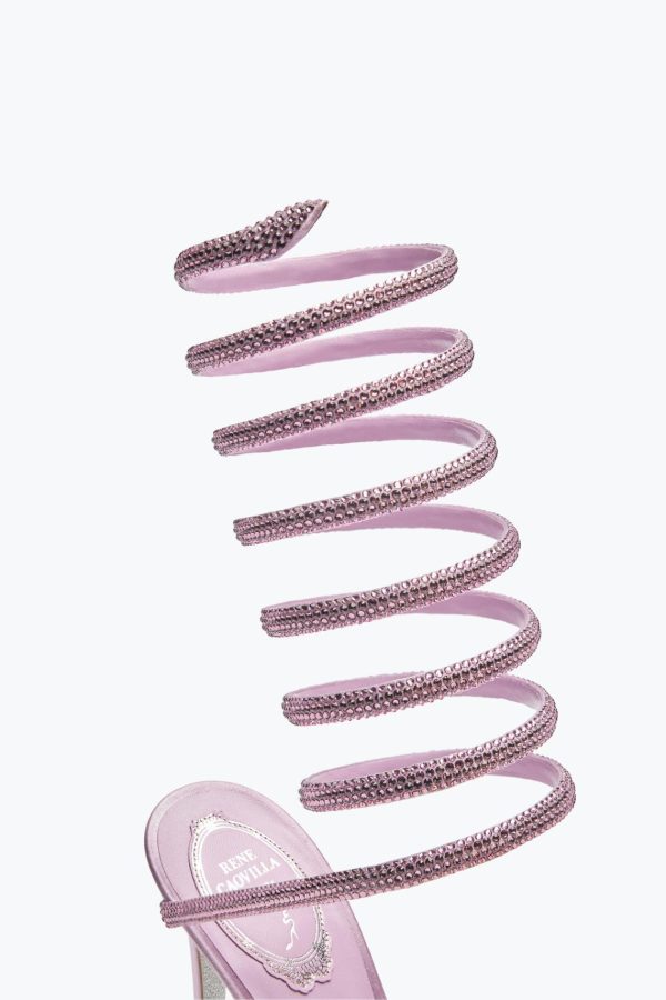 With its extra long serpent that winds sinuously along the leg, the Super Cleo sandal embodies femininity. This romantic lilac version gracefully balances the boldness of the design. It is a style that does not go unnoticed, to be shown off in a long dress with a deep slit that allows a glimpse of the silhouette.