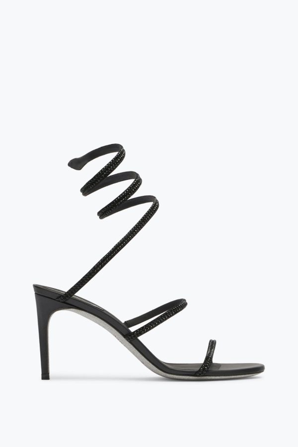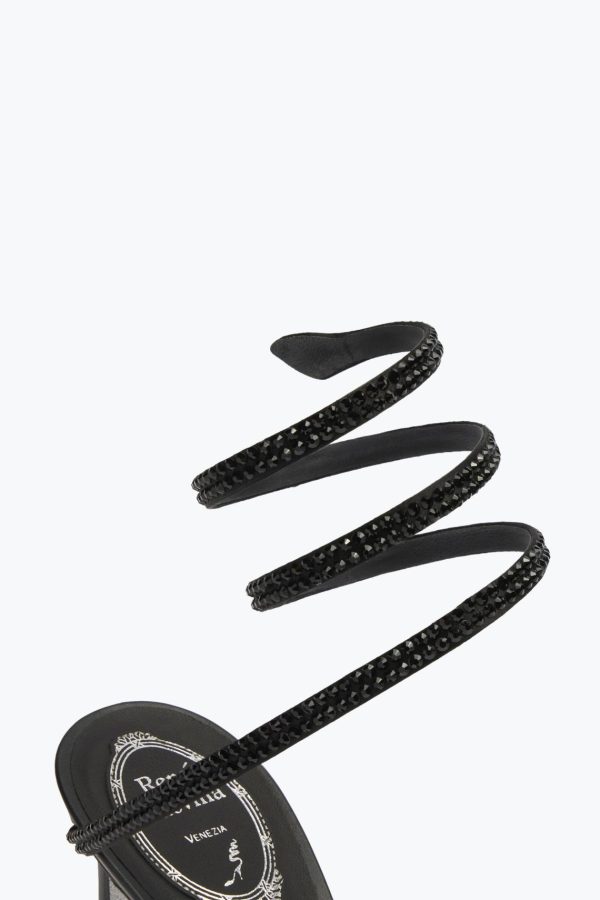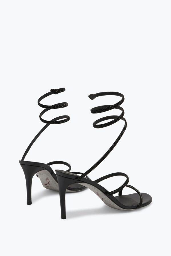A wardrobe essential, the Cleo sandal in classic black adds elegance and confidence to every look. Made in Italy from satin, this two-strap design features the iconic serpente and is embellished with black rhinestones. The medium stiletto heel is feminine and comfortable and the stardust sole adds the finishing touch.