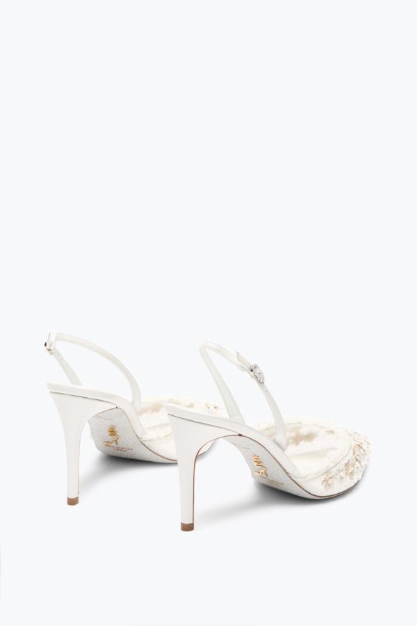 The archive-inspired Bloom slingback stands out with hand-embroidered corollas of flowers adorning the upper and serpent. In total white, it’s perfect for those moments to remember.