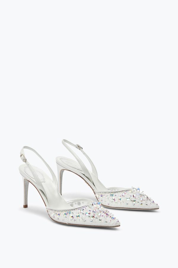 Rene Caovilla Slingbacks | Jeweled Cinderella White Slingback With Crystal ™ Women