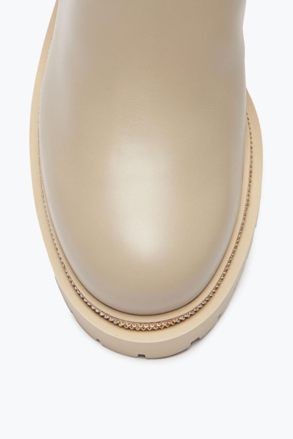 The Cleo bootie in soft beige leather is the perfect match to a tonal palette of winter earth tones. A practical mid-height block heel and rubber sole define its everyday appeal while the crystals encrusted on the snake and around the welt elevate the glamour factor.– Made in Italy– Heel height 2,4– Round toe– Leather and satin– Rubber sole