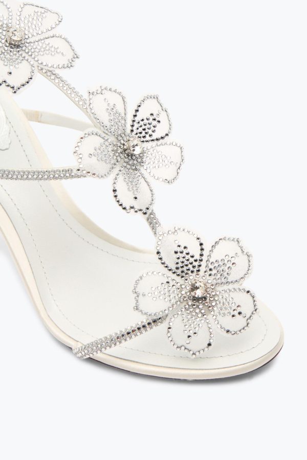 Paying homage to the Asian bloom, the Peach Flower sandal embodies the epitome of the maison’s excellent savoir-faire. Its five delicate lace and tulle petals, adorned with shimmering crystals, elegantly embellish the T-strap design. Featuring a practical ankle strap and a comfortable midi heel, this sandal, in its soft, ethereal shade, is the perfect choice for the modern bride.