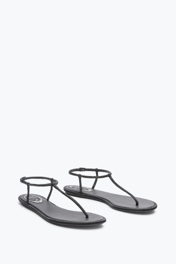 A perfect balance between elegance and comfort, the Diana flat sandal lets the foot breathe and adds the Maison’s sparkle. Small black rhinestones adorn the strap and ankle strap with adjustable buckle. Made in Italy, it has endless styling possibilities.