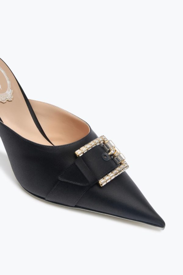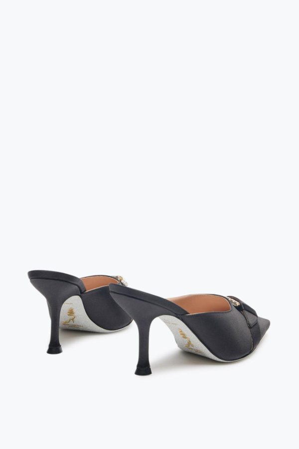 Retro soul, inimitable style: the Martha mule has a slightly high-necked pointed design, distinctive crystal-studded buckle and refined kitten heel that flatters the silhouette.