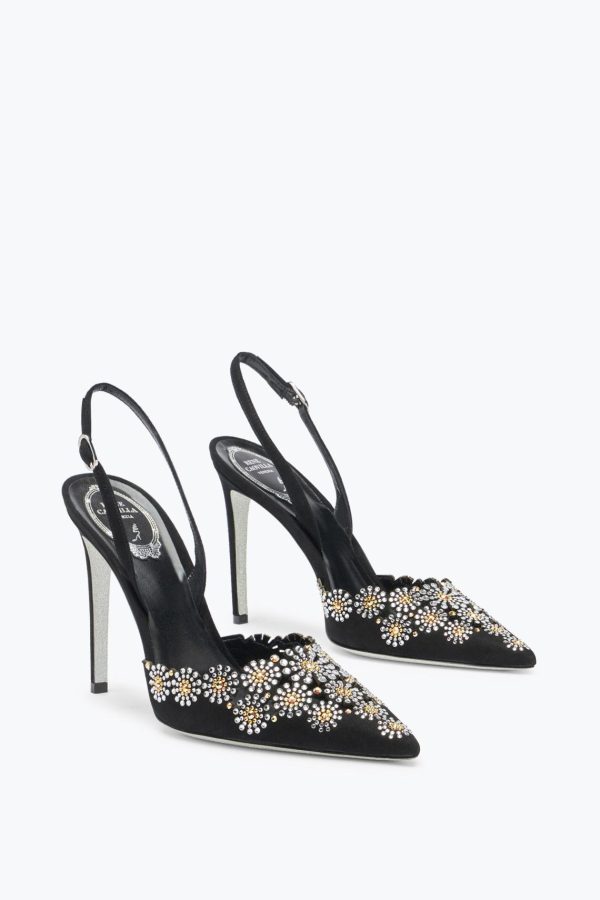 Rene Caovilla Slingbacks | Jeweled Daisy Black Suede Slingback With Crystals ™ Women